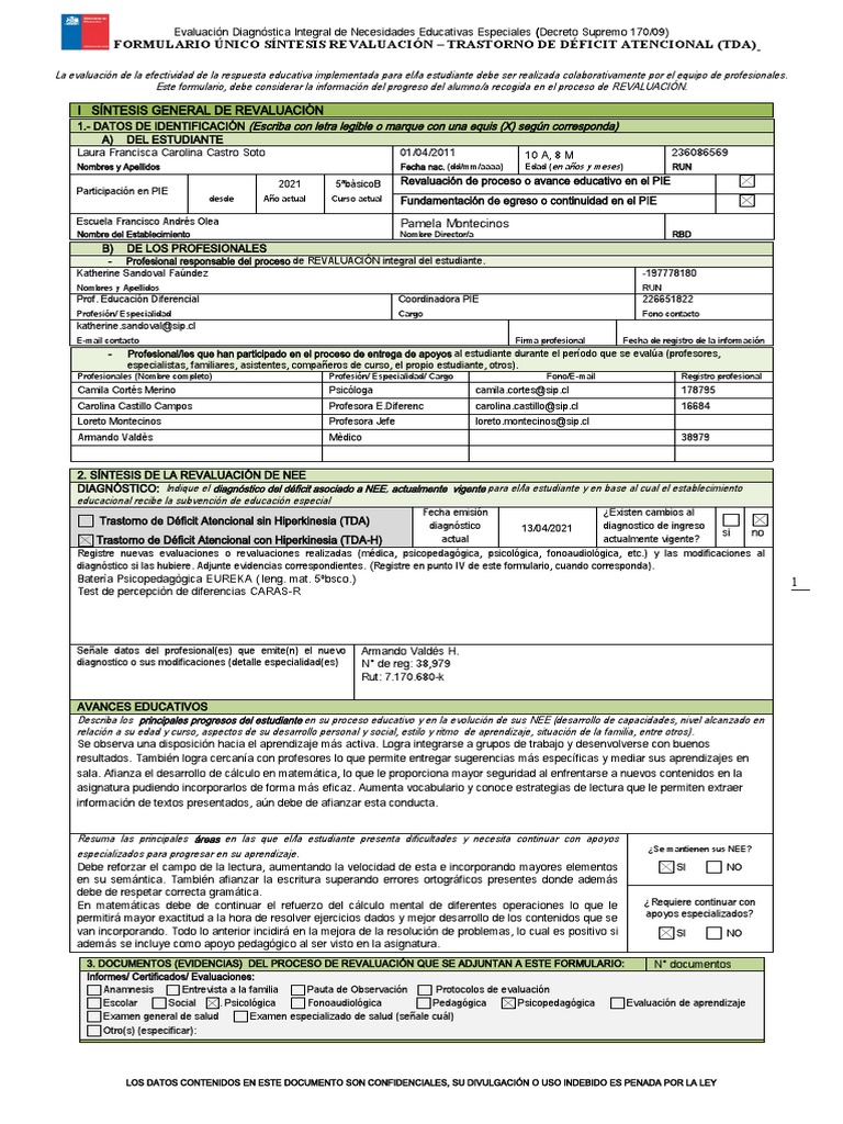 FORMULARIO ÚNICO SÍNTESIS REVALUACIÓN – TRASTORNO DE DÉFICIT ATENCIONAL (TDA)