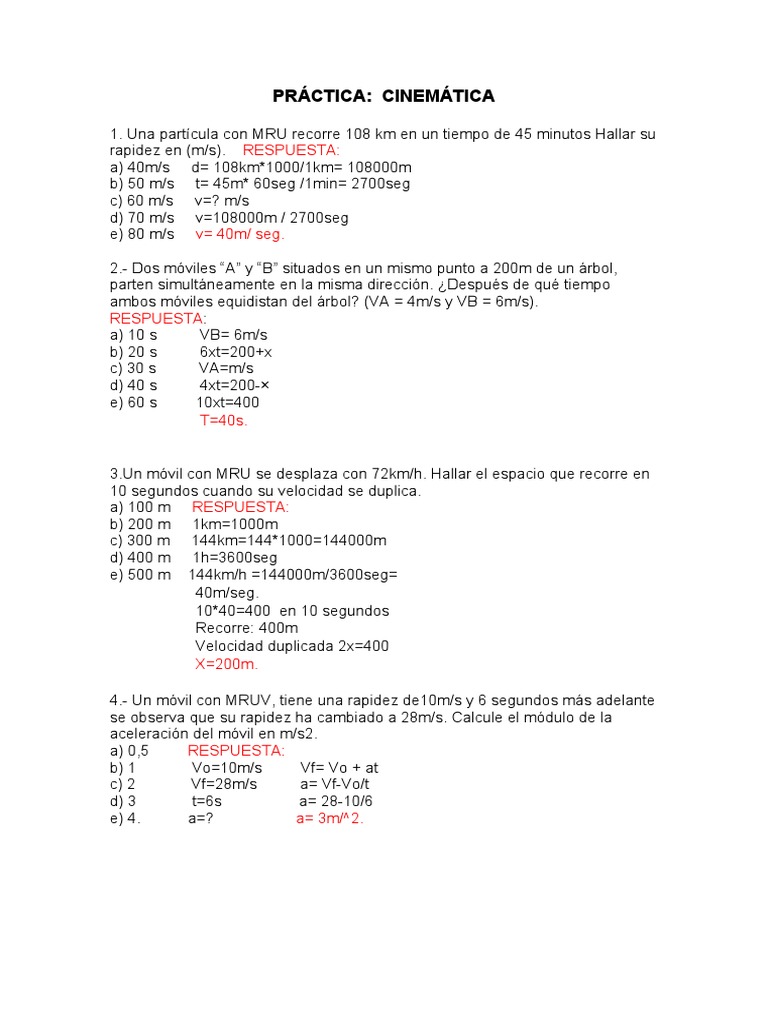 1. Una partícula con MRU recorre 108 km en un tiempo de 45 minutos Hallar su