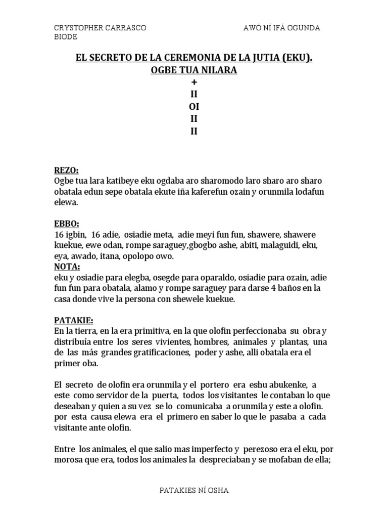 Este es el secreto de la ceremonia, que al matar a una eku, tres personas