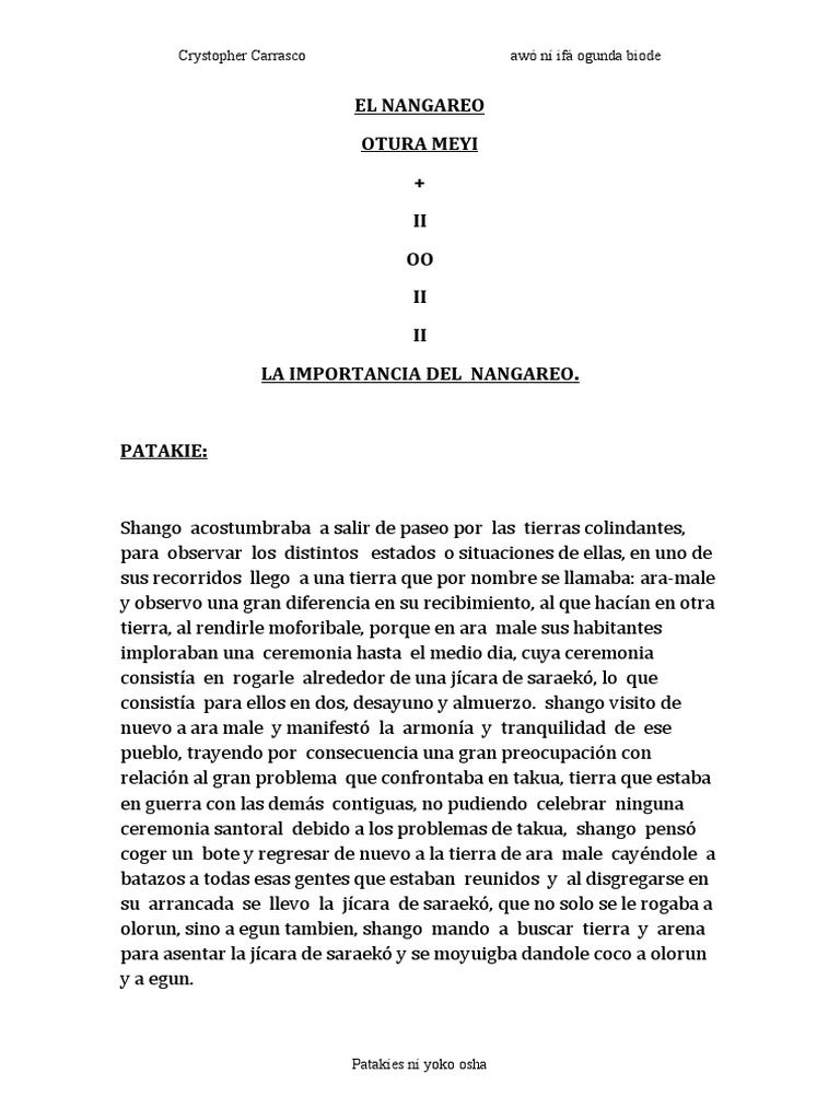 por eso antes de ita hay que hacer Nangareo, shango pudo hacer sus