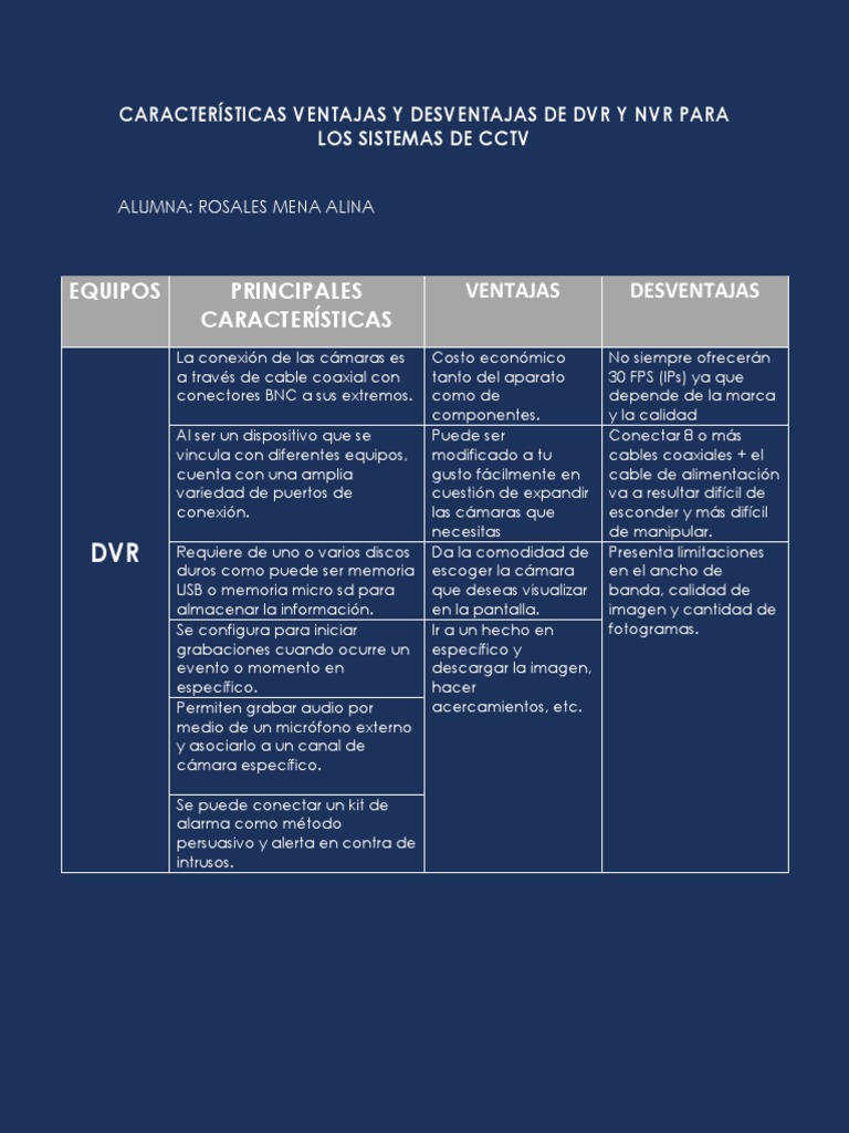CARACTERÍSTICAS VENTAJAS Y DESVENTAJAS DE DVR Y NVR PARA