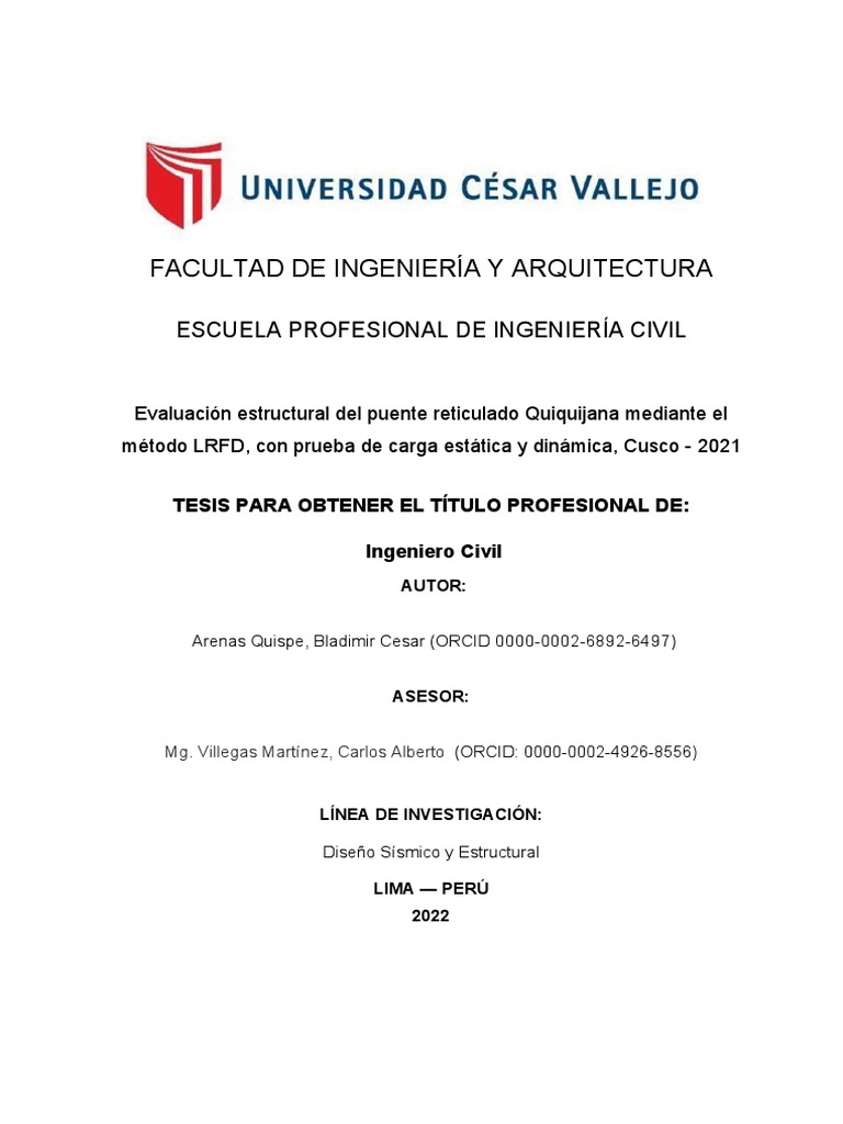 de la tesis que titula “Evaluación estructural del puente reticulado