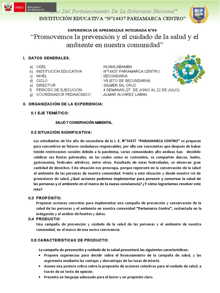 EXPERIENCIA DE APRENDIZAJE INTEGRADA N°04