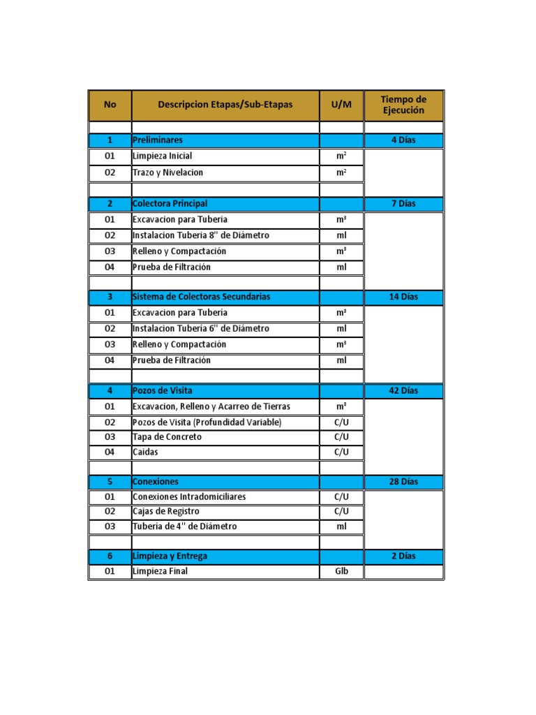 No Descripcion Etapas/Sub-Etapas U/M Tiempo de