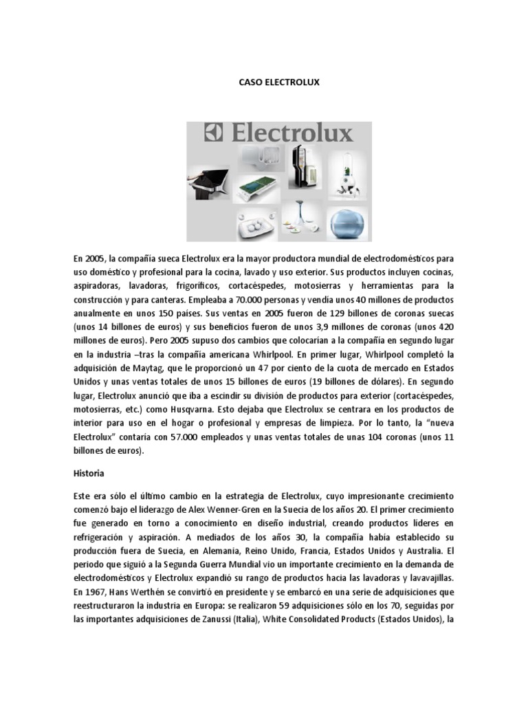 tanto, para esta estructura tan dispersa, Electrolux posee estrategias de negocios