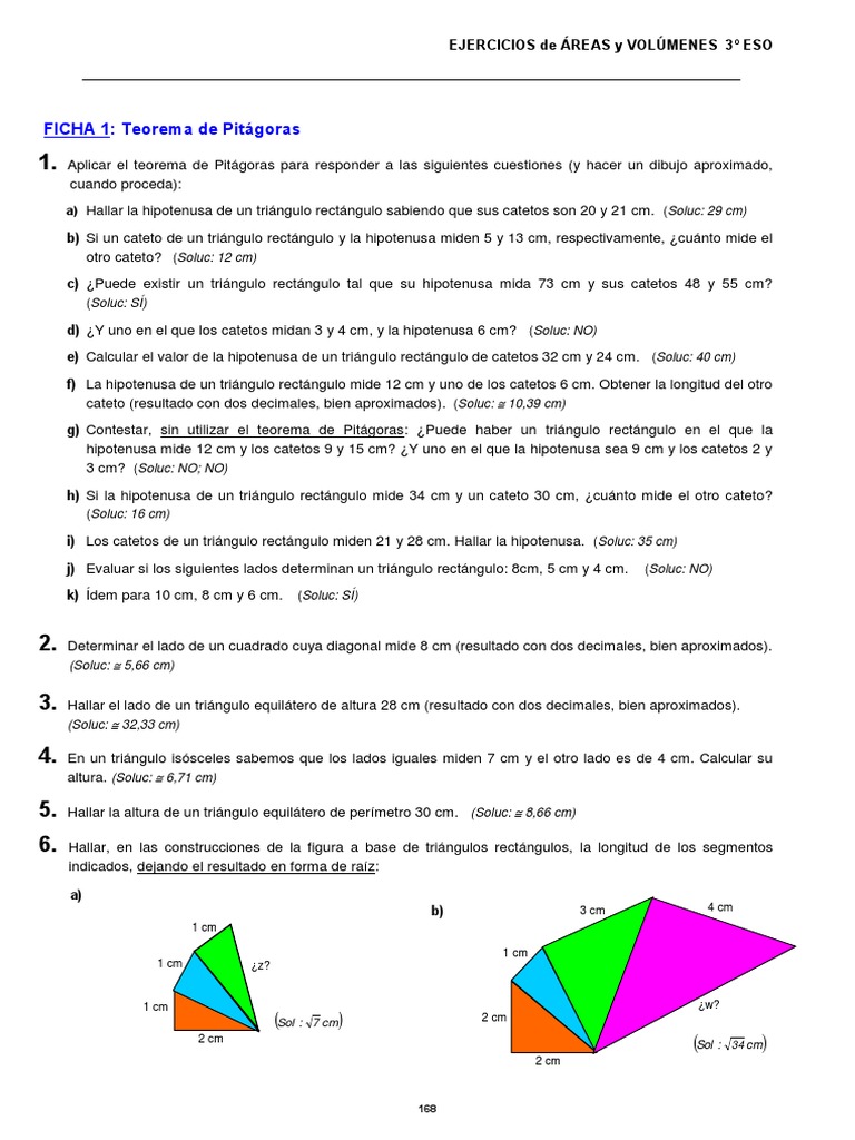 1. Aplicar el teorema de Pitágoras para responder a las siguientes cuestiones (y hacer un dibujo aproximado,