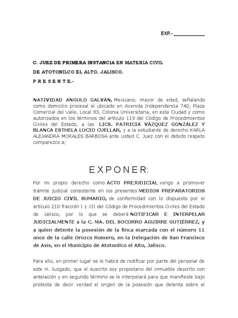trámite judicial consistente en los presentes MEDIOS PREPARATORIOS