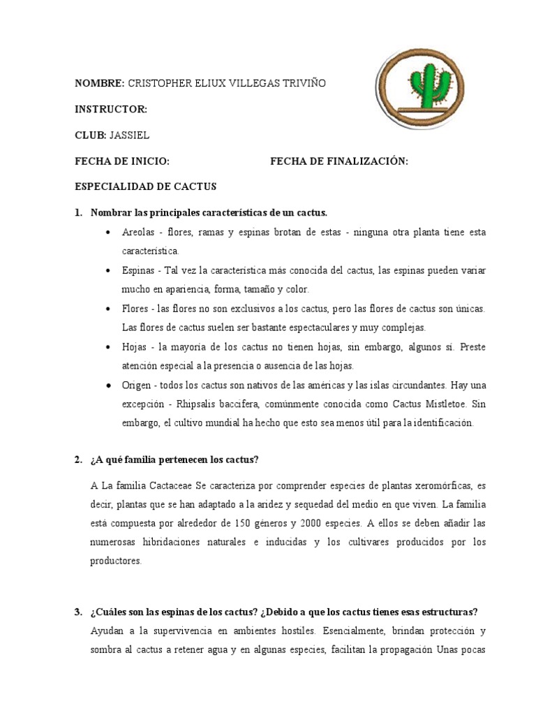 3. ¿Cuáles son las espinas de los cactus? ¿Debido a que los cactus tienes esas estructuras?