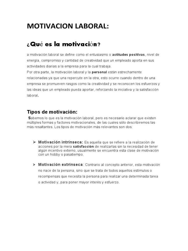 a motivación laboral se define como el entusiasmo o actitudes positivas, nivel de