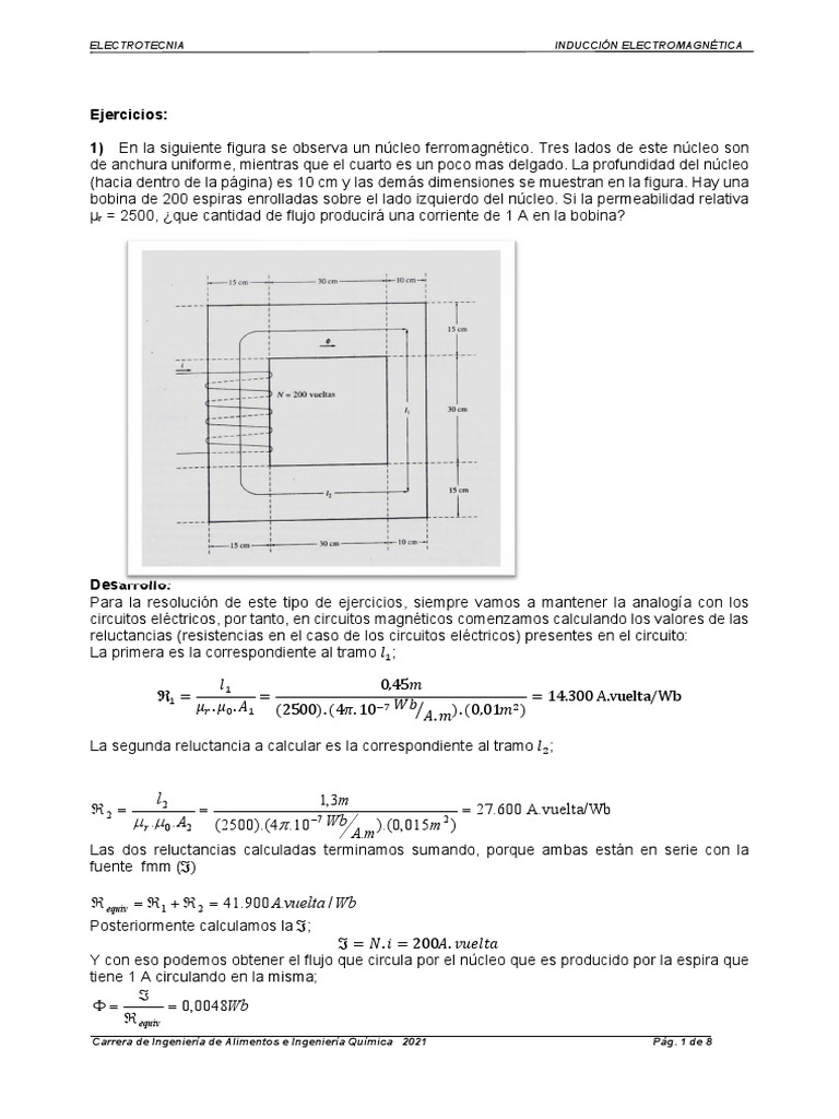 circuitos eléctricos, por tanto, en circuitos magnéticos comenzamos calculando los valores de las