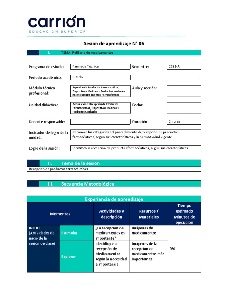 Logro de la sesión: Identifica la recepción de productos farmacéuticos, según sus características.