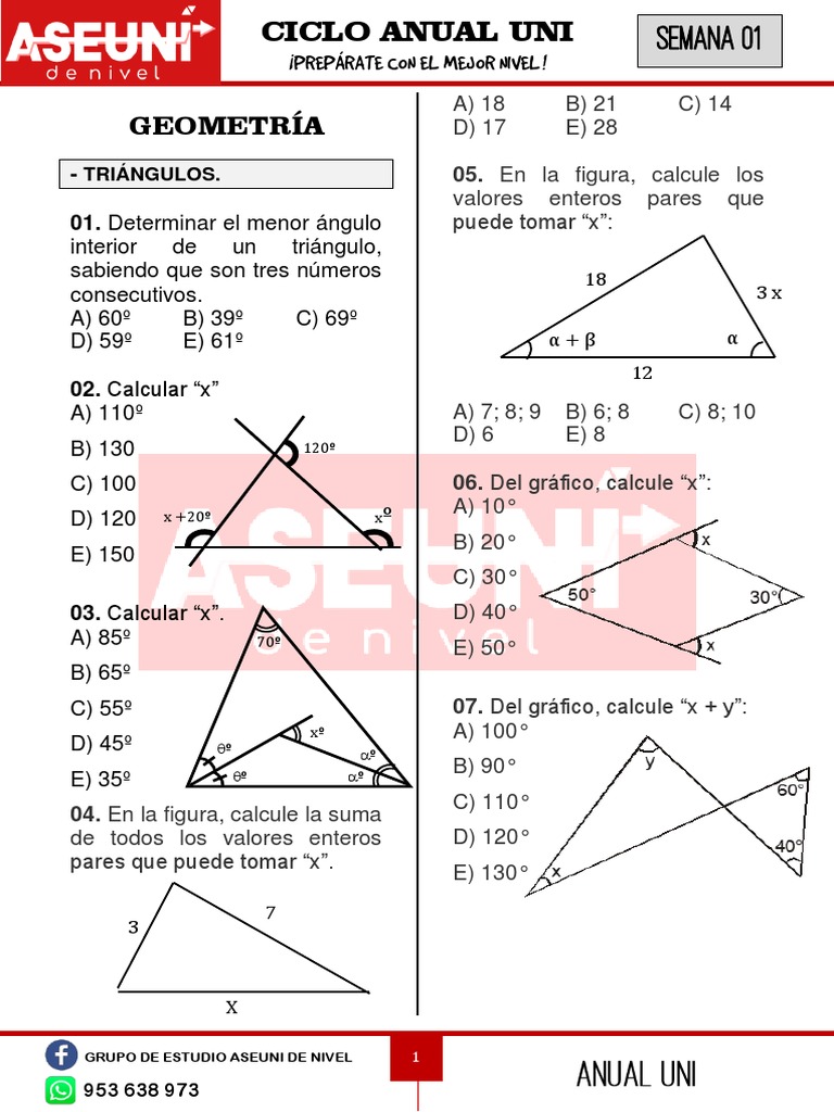 - TRIÁNGULOS. 05. En la figura, calcule los