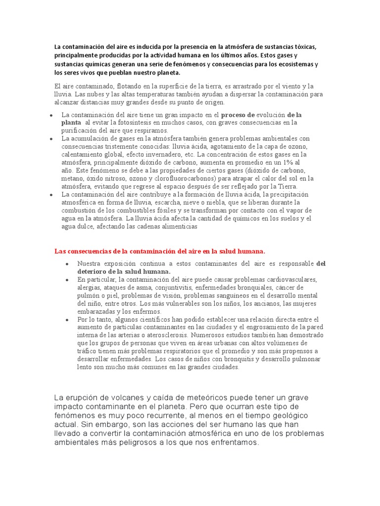 resulta muy importante. Primero porque lo respiramos todos los días;