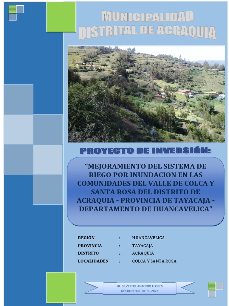 2019-EF/63.01 VALLE DE COLCA Y SANTA ROSA DEL DISTRITO DE ACRAQUIA - PROVINCIA DE TAYACAJA