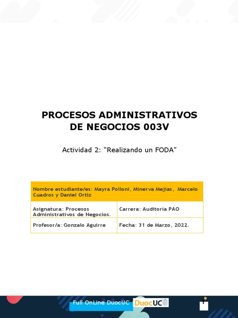 el método de análisis FODA. Para esto, identificaremos el entorno interno de la compañía para lograr