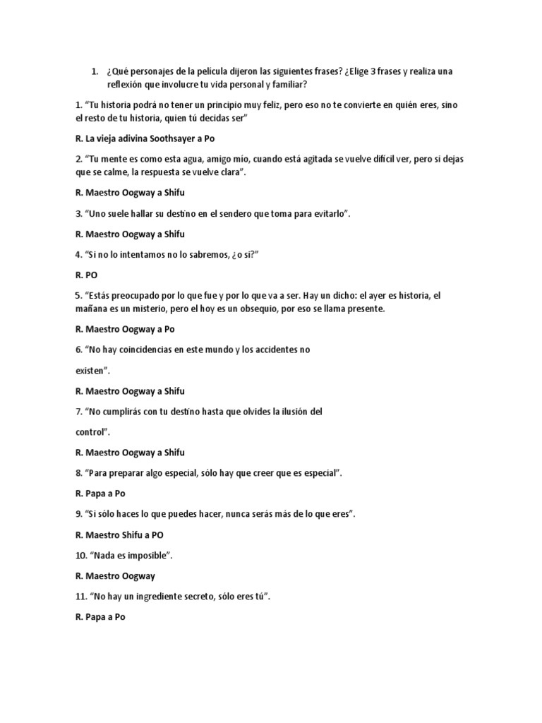 1. ¿Qué personajes de la película dijeron las siguientes frases?