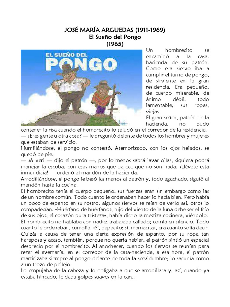 Y así, todos los días, el patrón hacía revolcarse a su nuevo pongo, delante de la