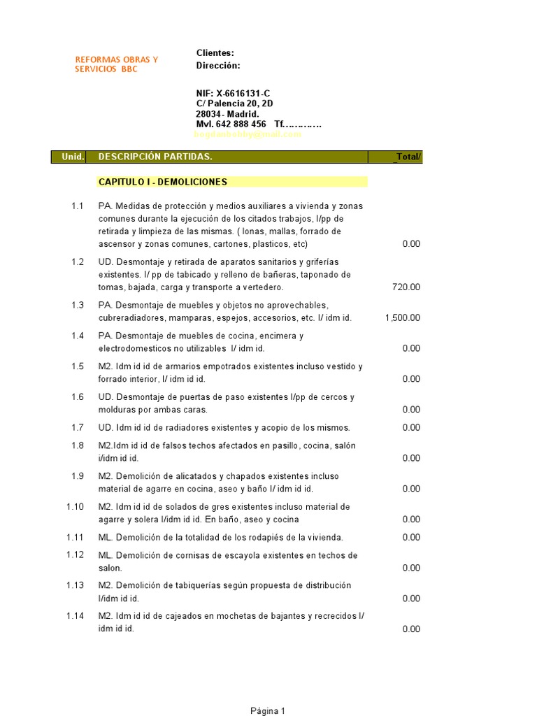 Unid. DESCRIPCIÓN PARTIDAS. Total/