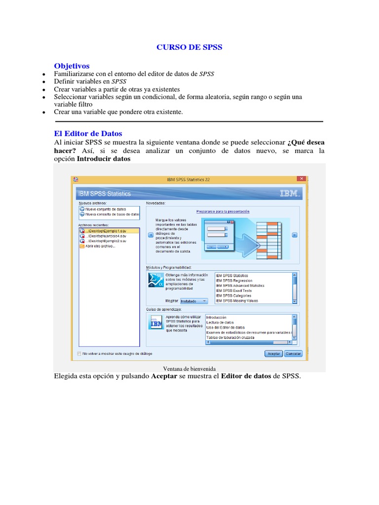 Al iniciar SPSS se muestra la siguiente ventana donde se puede seleccionar ¿Qué desea