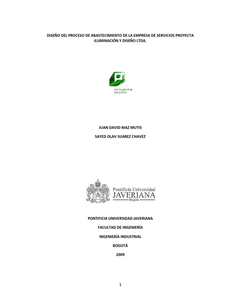 DISEÑO DEL PROCESO DE ABASTECIMIENTO DE LA EMPRESA DE SERVICIOS PROYECTA