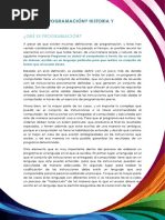 LENGUAJE DE PROGRAMACIN: Es la notacin formal para la descripcin de algoritmos, basada en un conjunto de instrucciones en alto nivel, que finalmente pasarn a bajo nivel para interactuar con el hardware y generar herramientas de trabajo. Los lenguajes son sistemas de comunicacin. Un lenguaje de programacin consiste en todos los smbolos, caracteres y reglas de uso que permiten a las personas "comunicarse" con las computadoras. Existen por lo menos varios cientos de lenguajes y dialectos de programacin diferentes. Algunos se crean para una aplicacin especial, mientras que otros son herramientas de uso general ms flexibles que son apropiadas para muchos tipos de aplicaciones. En todo caso los lenguajes de programacin deben tener instrucciones que pertenecen a las categoras ya familiares de entrada/salida, clculo/manipulacin de textos, lgica/comparacin y almacenamiento/recuperacin.