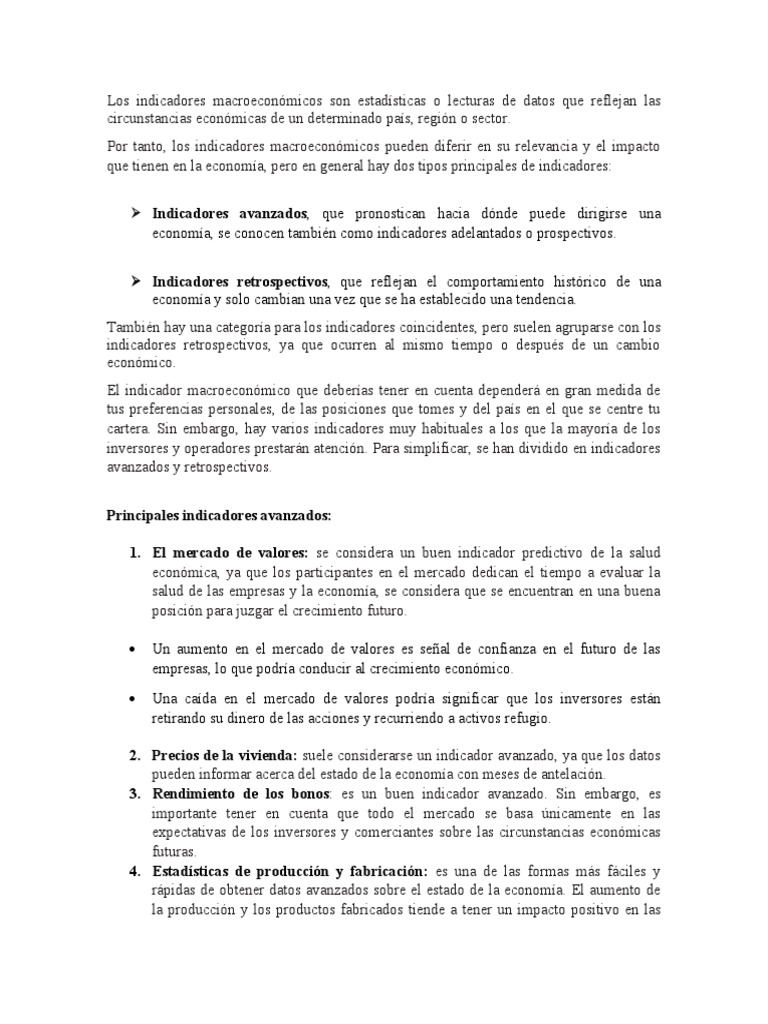 que tienen en la economía, pero en general hay dos tipos principales de indicadores: