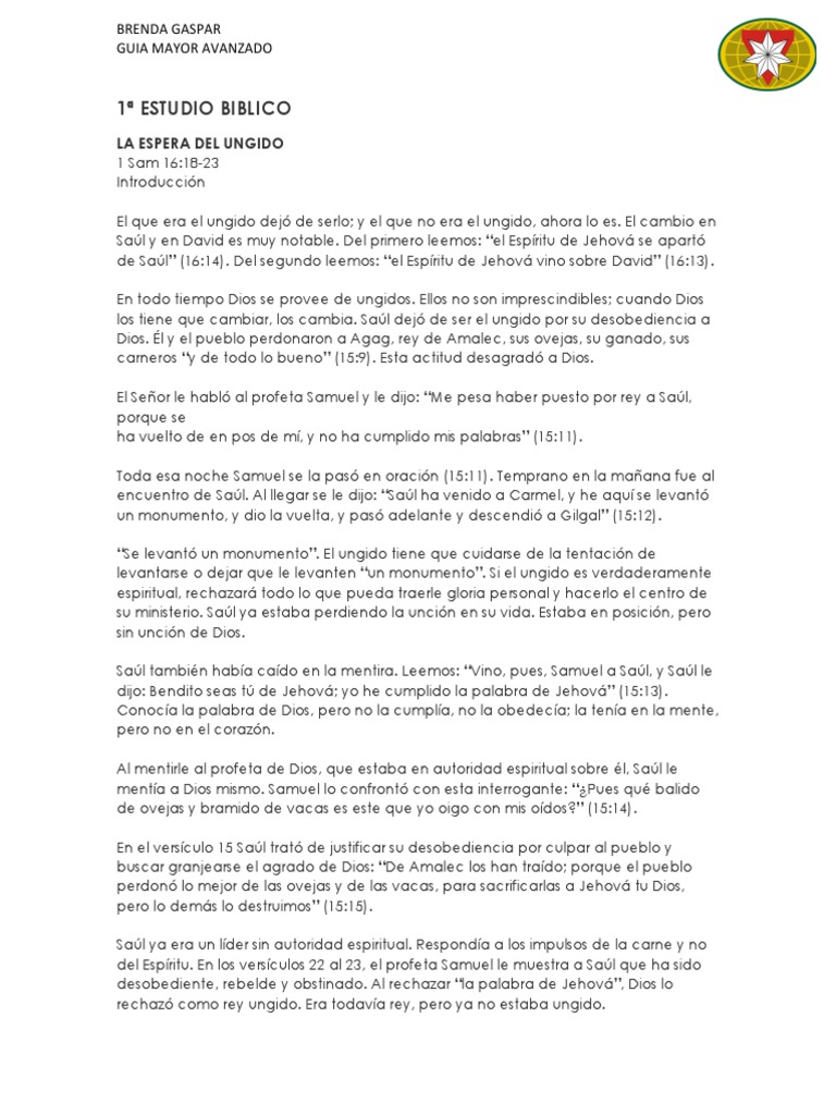 del Espíritu. En los versículos 22 al 23, el profeta Samuel le muestra a Saúl que ha sido