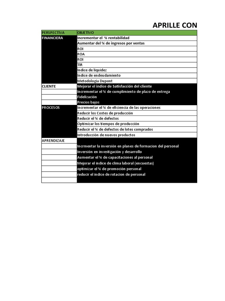 BALANCED SCORED CARD (DASHBOARD) APRILLE EVEN