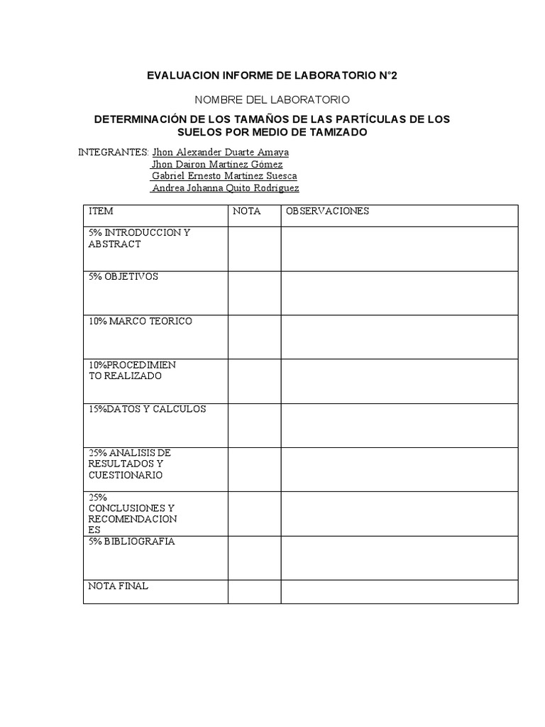 EVALUACION INFORME DE LABORATORIO N°2