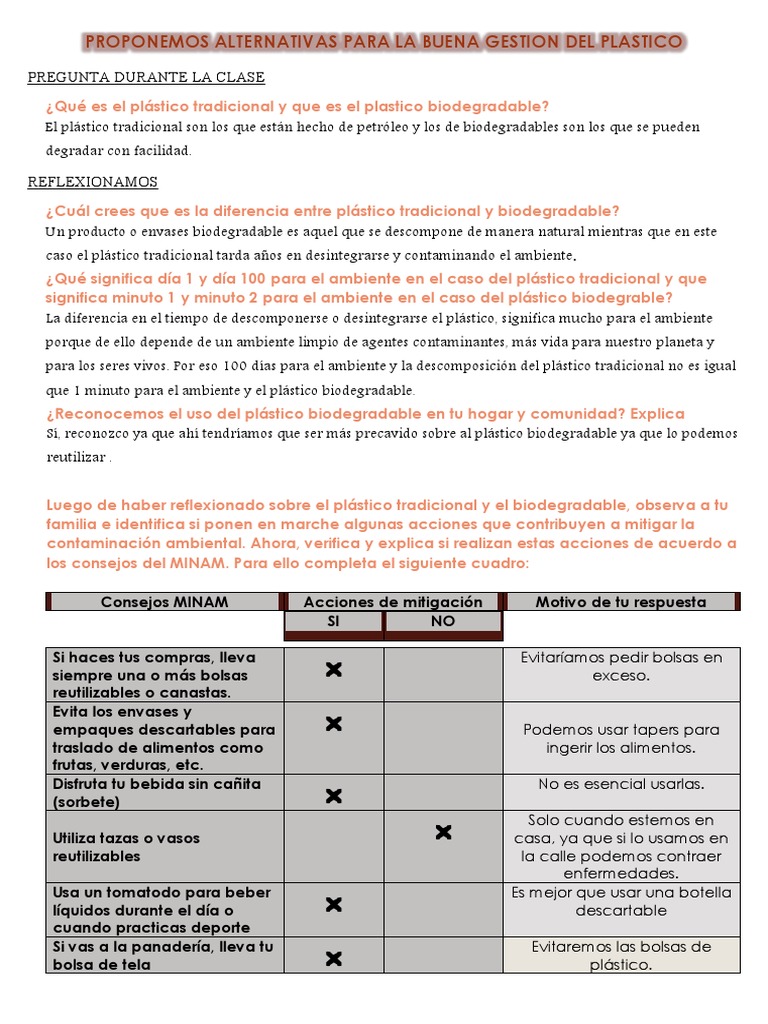 Luego de haber reflexionado sobre el plástico tradicional y el biodegradable, observa a tu