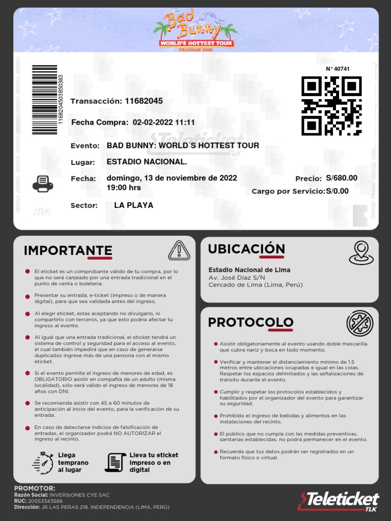 El eticket es un comprobante válido de tu compra, por lo Estadio Nacional de Lima