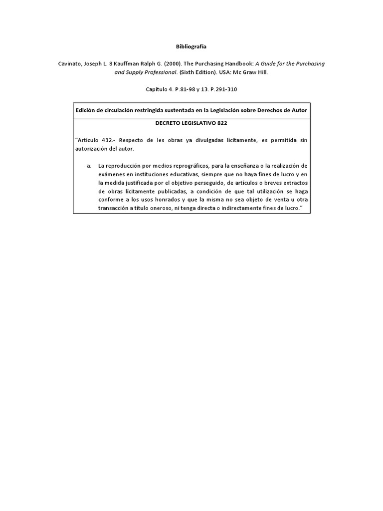 Cavinato, Joseph L. 8 Kauffman Ralph G. (2000). The Purchasing Handbook: A Guide for the Purchasing