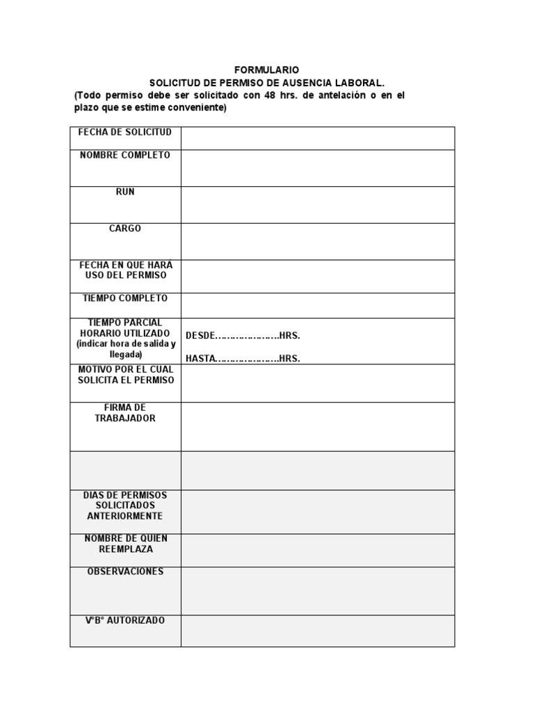 (Todo permiso debe ser solicitado con 48 hrs. de antelación o en el