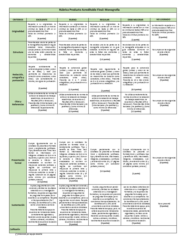 Rúbrica Producto Acreditable Final: Monografía