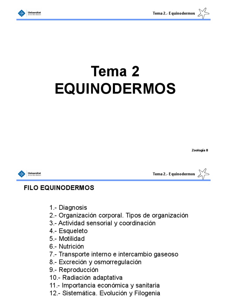 10.- Radiación adaptativa EQUINOZOOS Holoturoideos
