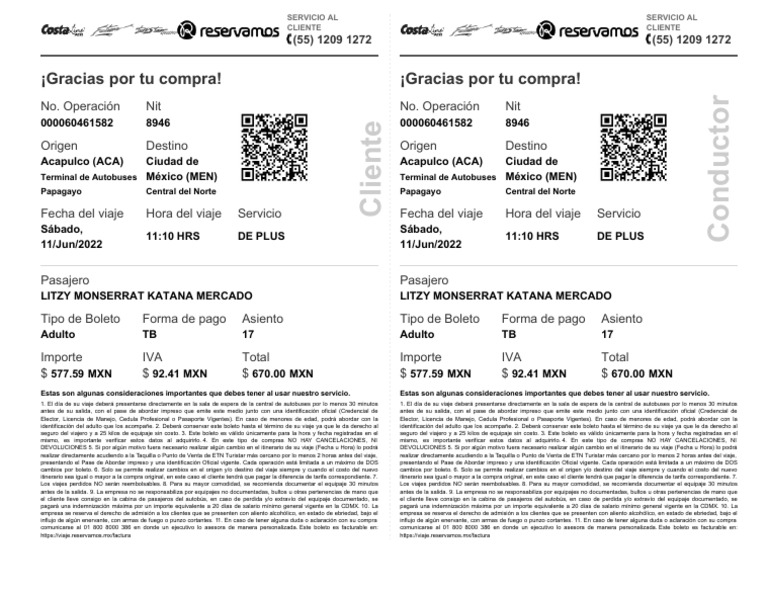 seguro del viajero y a 25 kilos de equipaje sin costo. 3. Este boleto es válido únicamente para la hora y fecha registradas en el seguro del viajero y a 25 kilos de equipaje sin costo. 3. Este boleto es válido únicamente para la hora y fecha registradas en el