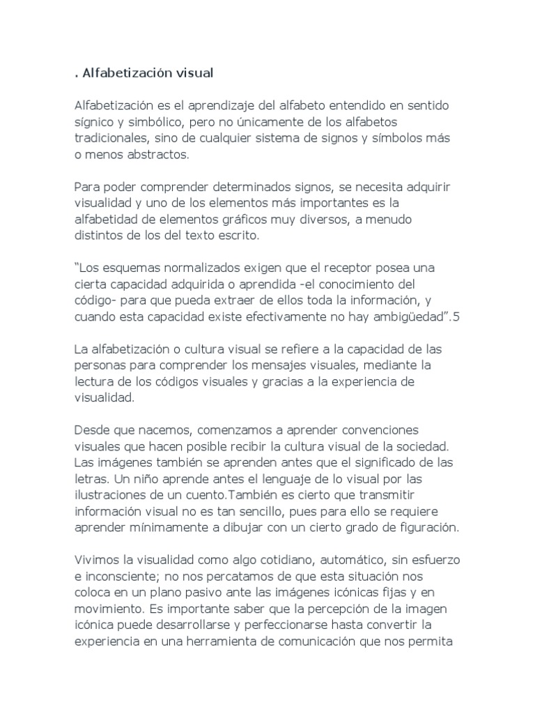 La alfabetización o cultura visual se refiere a la capacidad de las