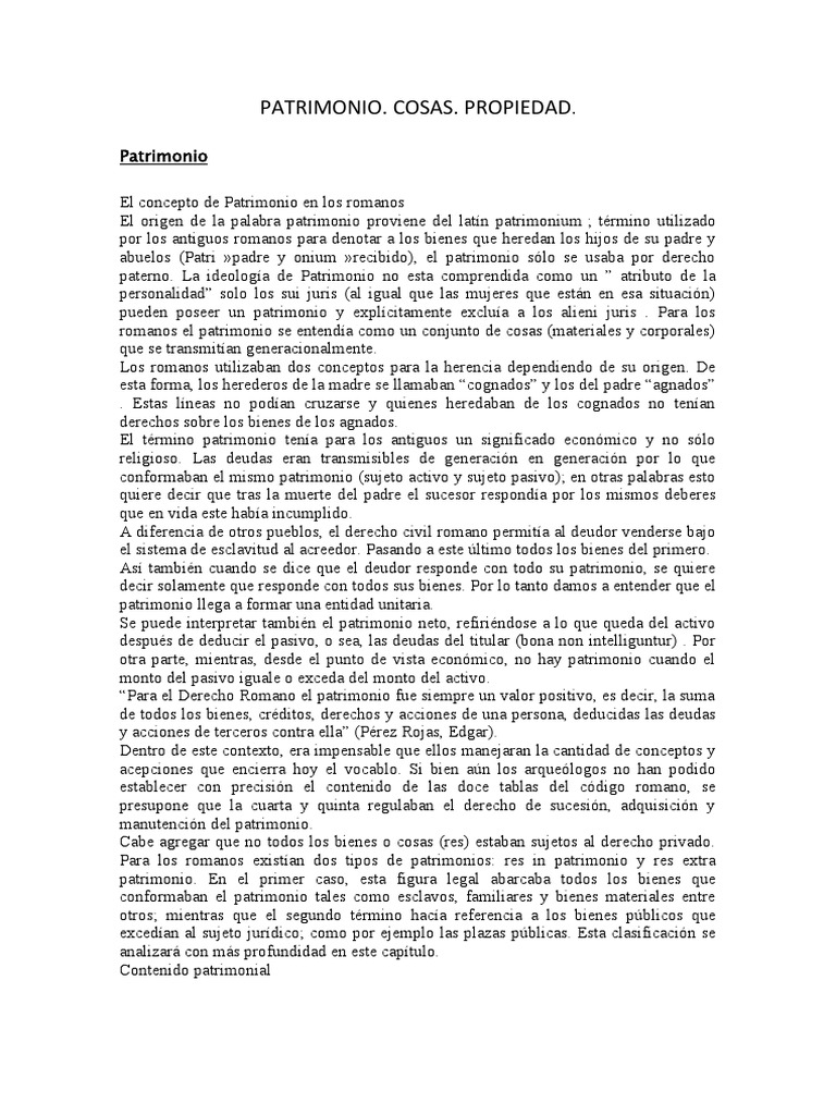 Los romanos denominaban a la cosa como “res”, esta es todo objeto extraño al hombre
