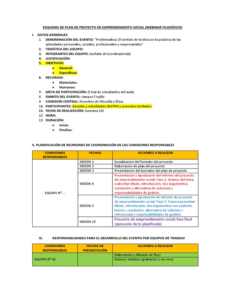 ESQUEMA DE PLAN DE PROYECTO DE EMPRENDIMIENTO SOCIAL (WEBINAR FILOSÓFICO)