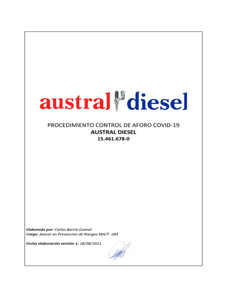contratistas, proveedores, usuarios, clientes, etc.) que ingresan al centro de Austral Diesel