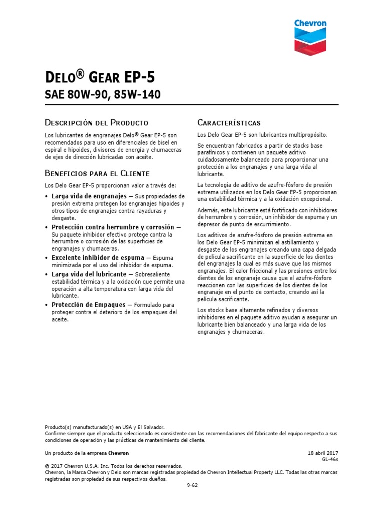 Los lubricantes de engranajes Delo® Gear EP-5 son Los Delo Gear EP-5 son lubricantes multipropósito.