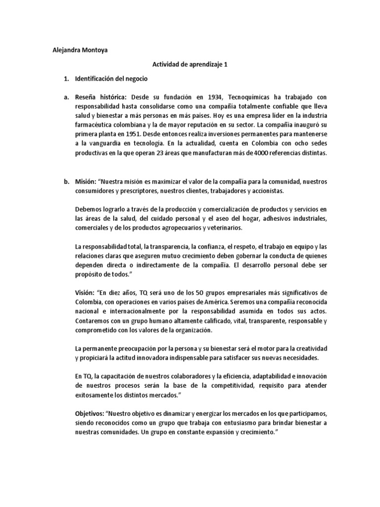 a. Reseña histórica: Desde su fundación en 1934, Tecnoquímicas ha trabajado con