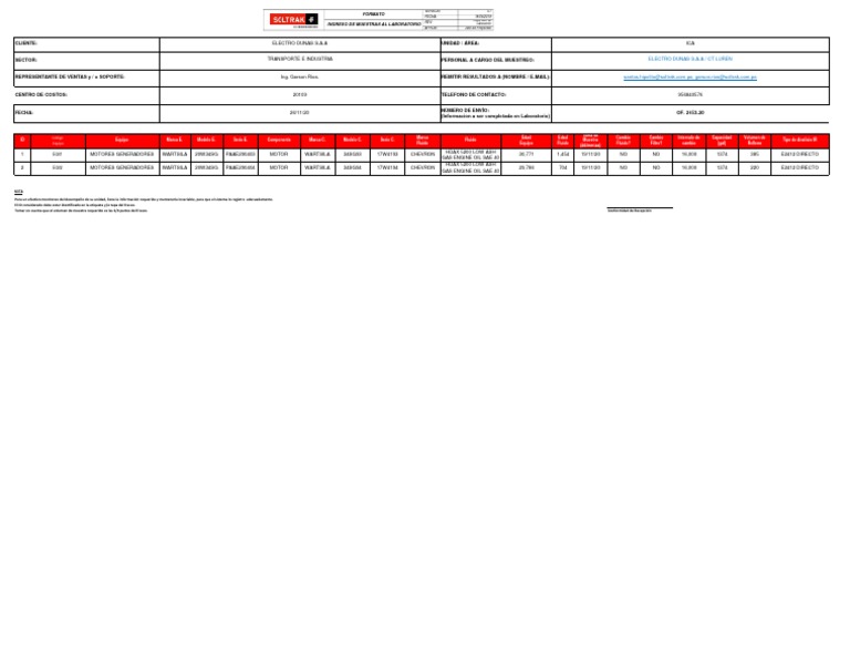 REPRESENTANTE DE VENTAS y / o SOPORTE: Ing. Gerson Rios. REMITIR RESULTADOS A (NOMBRE / E-MAIL): santos.hipolito@soltrak.com.pe, gerson.rios@soltrak.com.pe