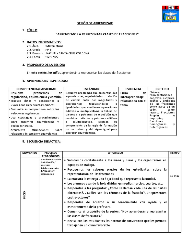 En esta sesión, los niños aprenderán a representar las clases de fracciones.