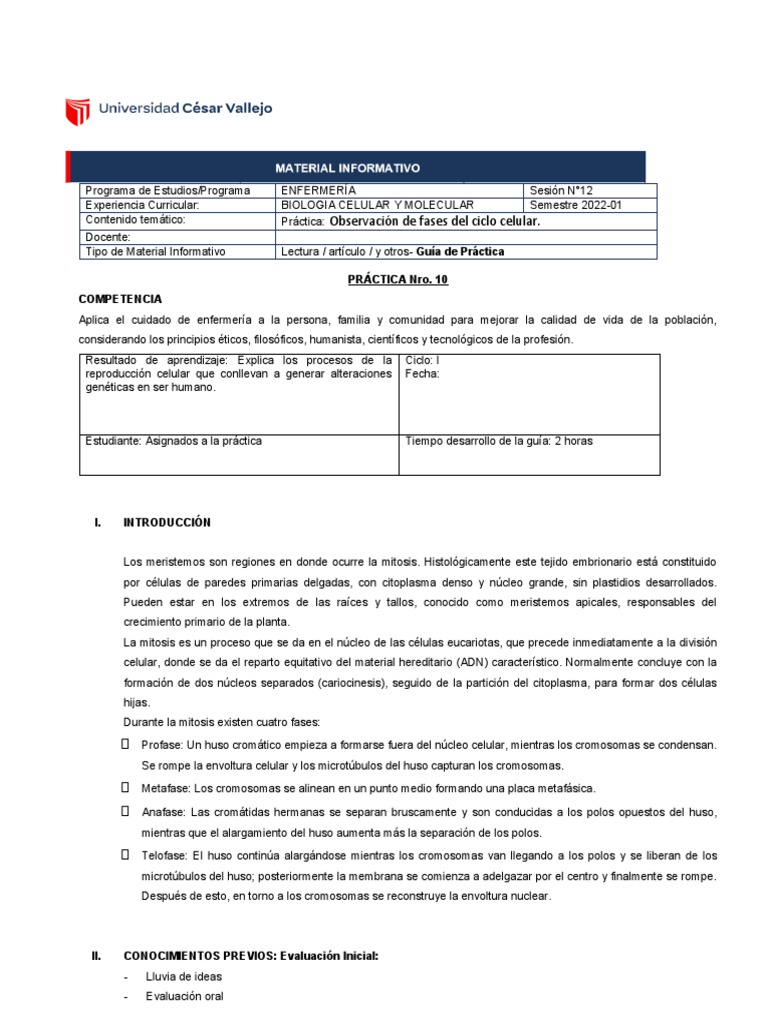 Contenido temático: Práctica: Observación de fases del ciclo celular.