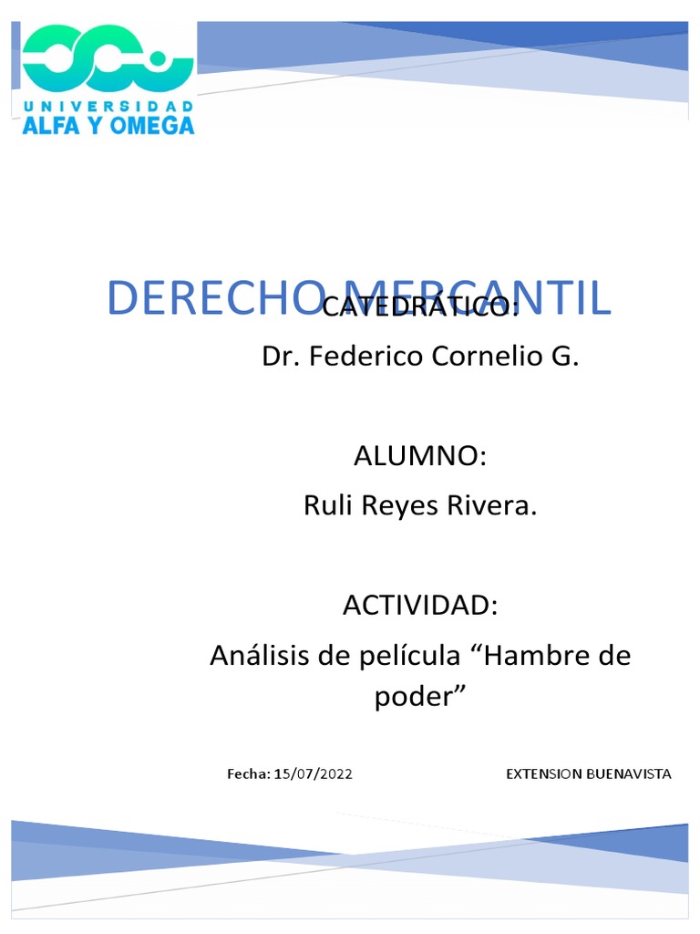ANÁLISIS DE LA PELICULA HAMBRE DE PODER