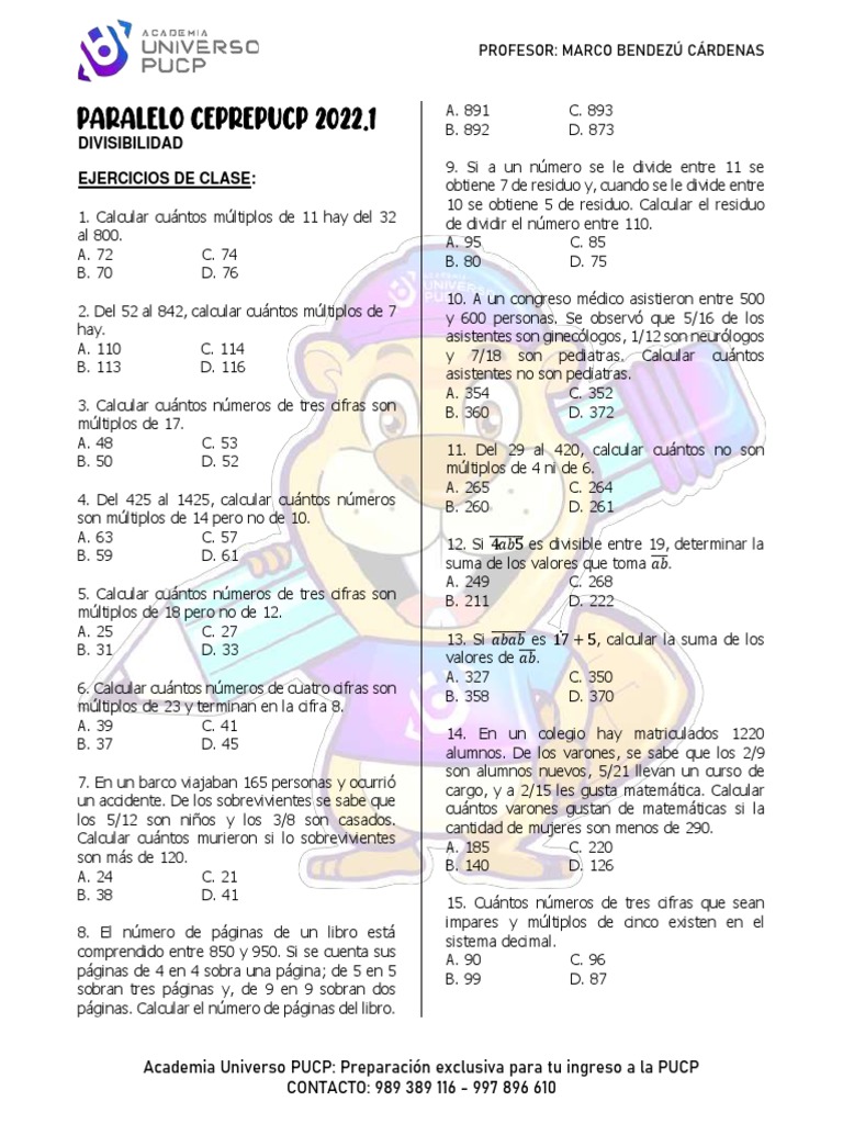 4. Del 425 al 1425, calcular cuántos números B. 260 D. 261