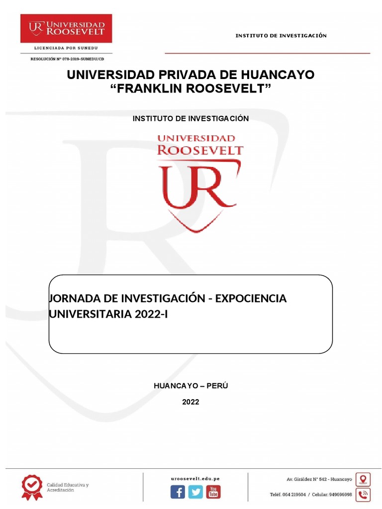 Universidad Privada de Huancayo “Franklin Roosevelt”, que la fomenta y la realiza