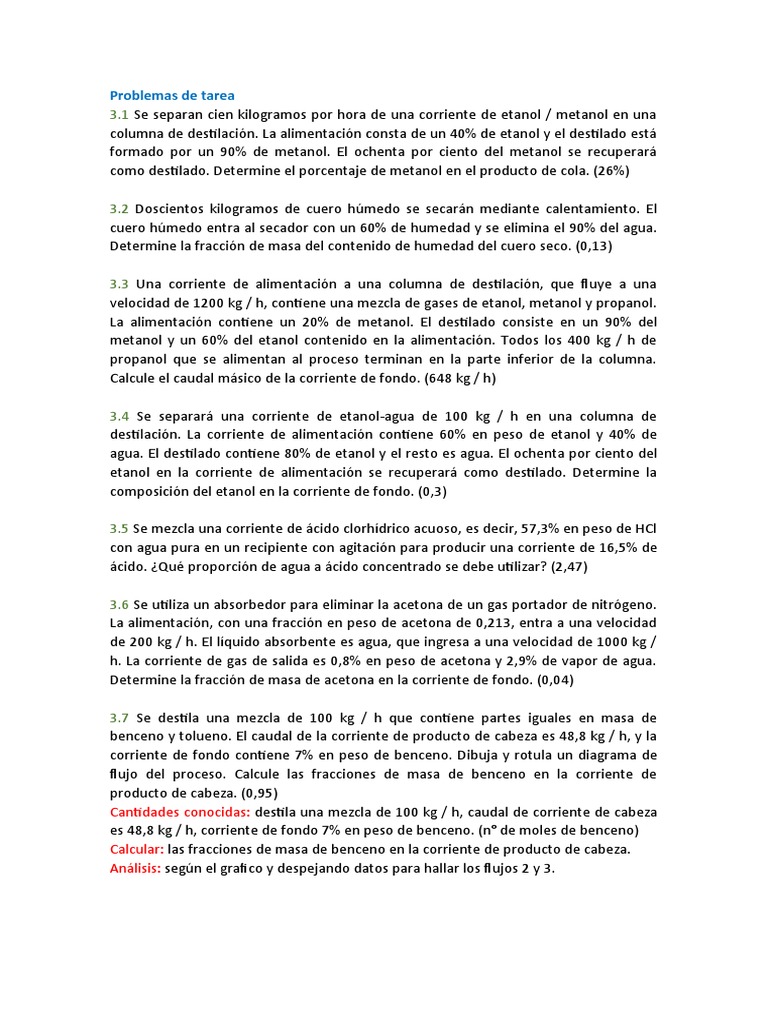 3.7 Se destila una mezcla de 100 kg / h que contiene partes iguales en masa de