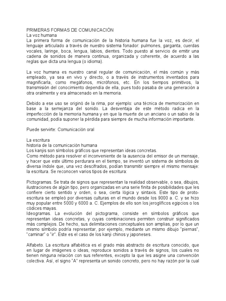 La primera forma de comunicación de la historia humana fue la voz, es decir, el